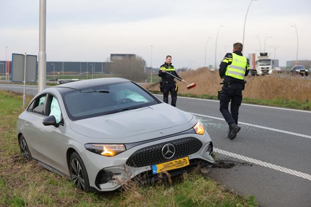 De bestuurder van een Mercedes-Benz CLA 250+, die nog maar enkele maanden oud was, verloor bij de afrit in een bocht de macht over het stuur. Het voertuig kwam daarbij op zijn zijkant tot stilstand. Omdat de bestuurder niet zelfstandig uit het voertuig kon komen, werd de brandweer opgeroepen. De politie, die als eerste ter plaatse was, wist de bestuurder echter uit de auto te bevrijden.