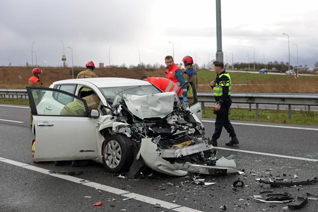 Het incident ontstond toen twee vrachtwagens tegen elkaar botsten. Een automobilist die het ongeval te laat opmerkte, kon een aanrijding niet meer voorkomen en klapte achterop de tweede vrachtwagen. De impact was zo groot dat de bestuurder van de personenauto bekneld raakte in het voertuig. De brandweer kwam met spoed ter plaatse en heeft de auto opengeknipt om het slachtoffer te bevrijden. De gewonde is vervolgens met onbekend letsel overgedragen aan het ambulancepersoneel.