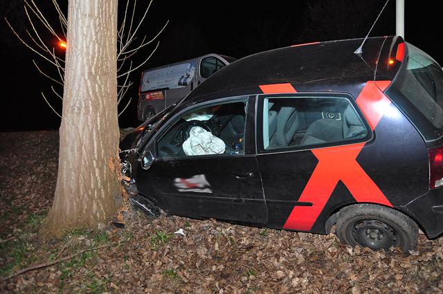 De bestuurder van de auto kwam de bocht om met een te hoge snelheid en raakte hierbij de macht over het stuur kwijt met als gevolg dat hij met zijn auto van het talud reed. De auto kwam tegen een boom tot stilstand.