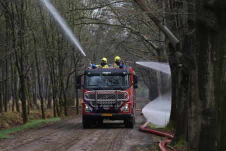 Kilometers brandweerslangen liggen door het bos verspreid om zo veel mogelijk bluswater te hebben. Het blussen gaat 'sowieso nog de hele ochtend en waarschijnlijk een groot deel van de middag duren', meldt de Veiligheidsregio. De brand is onder controle maar het sein 'brand meester' is nog niet gegeven.