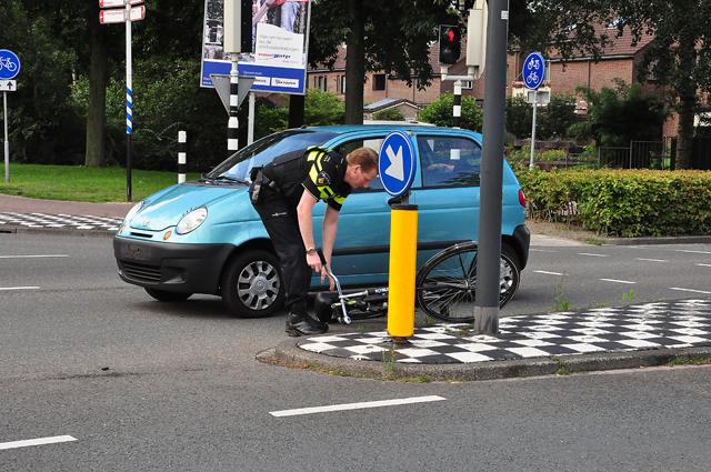 De fiets lag een stukje onder de auto. Nadat de politie foto's had gemaakt werd de auto en de fiets op een andere plek gezet.