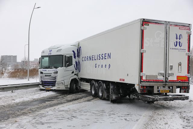 Het ongeval vond plaats rond 10.45 uur. Door het spekgladde wegdek verloor de chauffeur de controle over zijn voertuig. De vrachtwagen begon te glijden, raakte de vangrail en blokkeerde vervolgens de rijbaan. Ondanks de klap kwam de chauffeur met de schrik vrij; hij raakte niet gewond.