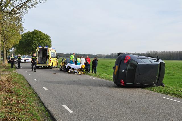 Een flink ongeluk vrijdagmiddag op de Blaasbalgweg in Waalwijk/Heusden. Een auto raakte daar van de weg en kwam op zijn kant terecht. Zeker een kind is naar het ziekenhuis gebracht.