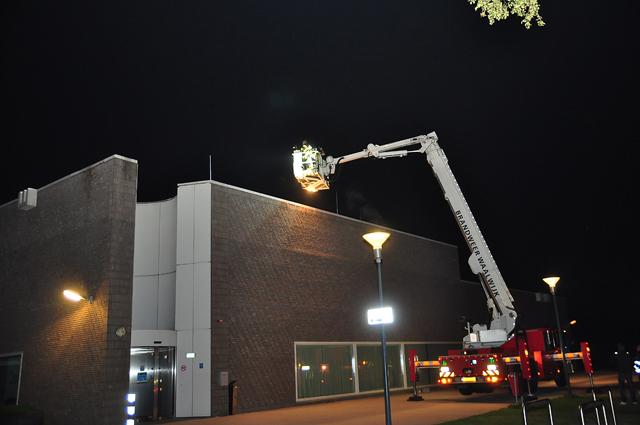 Voorbijgangers zagen enkele mannen lopen op het dak van het zwembad Olympia. De politie was met meerdere eenheden snel ter plaatse. Een hoogwerker van de brandweer was ingezet om de politie het dak op te brengen.
