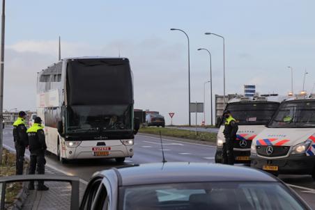 De politie had een grote groep voetbalsupporters onder begeleiding naar hun bus gebracht. Ook hier ontstonden opstootjes tussen de voetbalsupporters, en de politie. Ook werd de politie bekogeld met glas. Ze zouden ook bespuugd zijn, melden politiebonden.