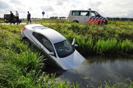 Een automobilist was gewond geraakt nadat hij de macht over het stuur was verloren. Zijn auto raakte van de weg en belandde op z'n kop in de sloot. De automobilist is door omstanders uit de auto gehaald en op het fietspad neergelegd.