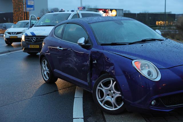 Op de rotonde botste een bestuurder van een bestelbus tegen de zijkant van een personenauto. Beide voertuigen liepen forse schade op, maar niemand raakte gewond. De politie kwam ter plaatse om de situatie in kaart te brengen en de schade op te nemen.