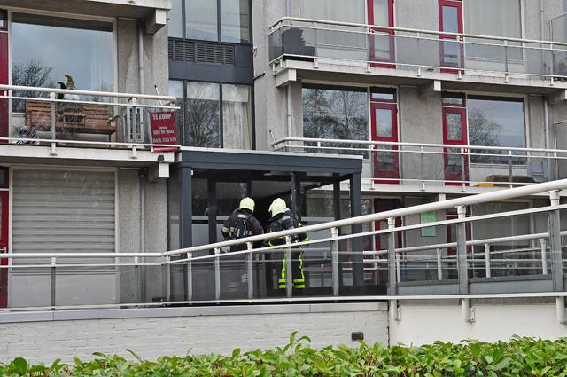 Mensen in de flat hadden een sterke brandlucht geroken en belden direct de brandweer. De bewoners van de woning waar de brandlucht vandaan kwam, waren niet thuis. De brandweer heeft de deur moeten open breken.