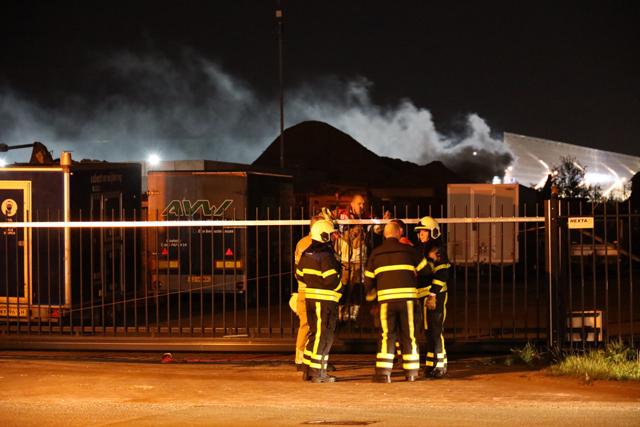 Het vuur op het terrein van Maton was weer aan het branden gegaan. Er was een brandje in het afvalhout.