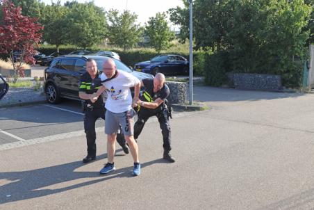 Twee mannen waren ruzie aan het maken op de parkeerplaats bij de Burger King. Een van de mannen werd agressief naar de politie en begon spullen uit de auto naar hen te gooien. De politie sprak de man hierop aan, waarna de man tegen het been van een agent aanschopte. Hierop is door twee agenten de man uit de auto gehaald en ontstond er een korte worsteling. Uiteindelijk kon de politie de man in de boeien slaan.